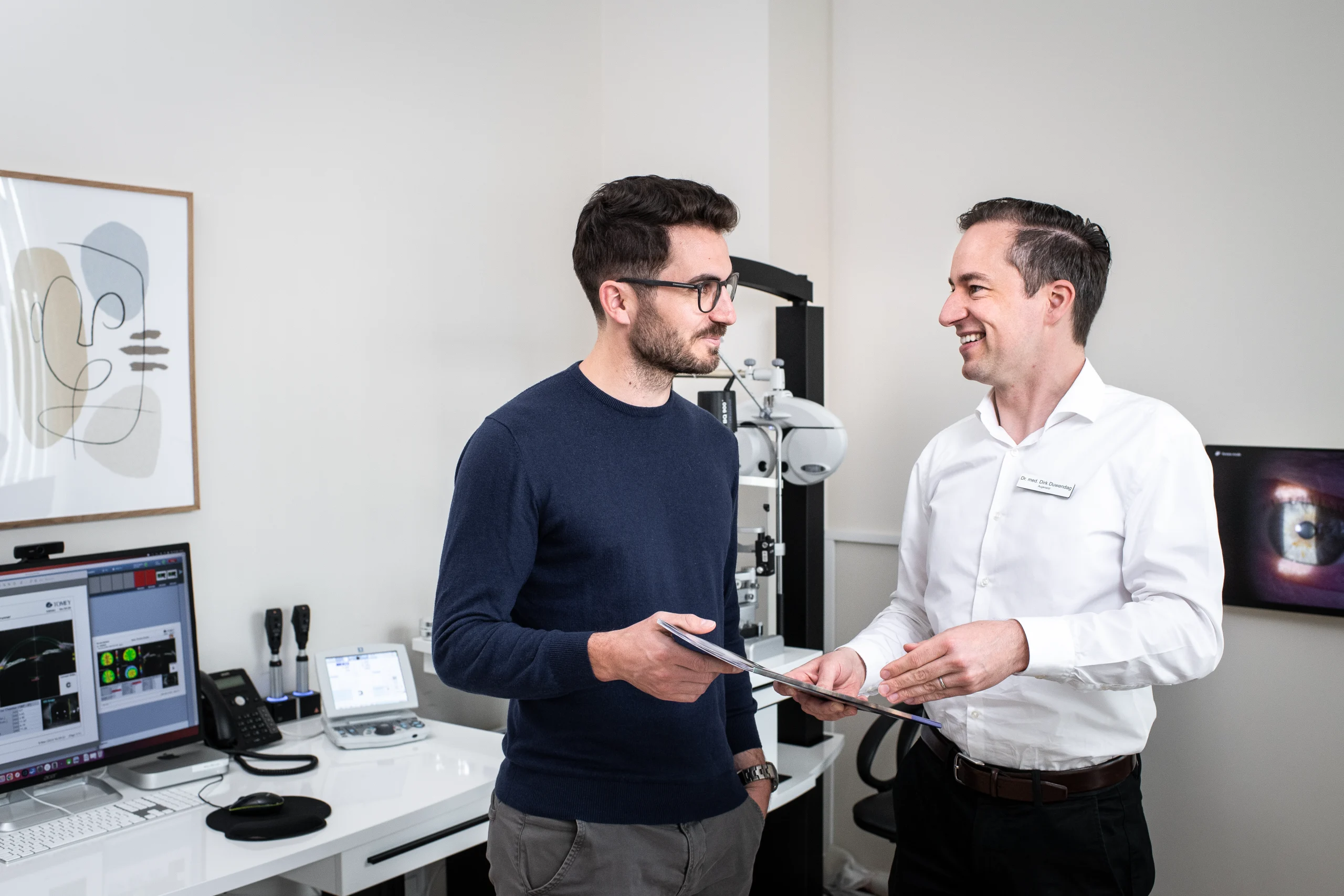 Folgende Voraussetzungen sollten auf Sie zutreffen: Sie sind kurzsichtig (bis 10 Dioptrien), weitsichtig (bis +3 Dioptrien) oder/und haben eine Hornhautverkrümmung (bis 6 Dioptrien). Achtung: Je nach Kombination von Fehlsichtigkeit und Weitsichtigkeit, ändert sich die Eignung. Dies wird in der kostenlosen Voruntersuchung geprüft. Nennen Sie uns im Gespräch auch Ihre Vorerkrankungen.